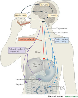 Jak už jsem psala, centrum řízení hladu a sytosti se nachází v hypotalamu. Ukazuje se, že odsud může být řízen též výdej energie, v každém případě jde o složitý neurohumorální proces, který monitoruje dostupnost energie či velikost tukové tkáně.