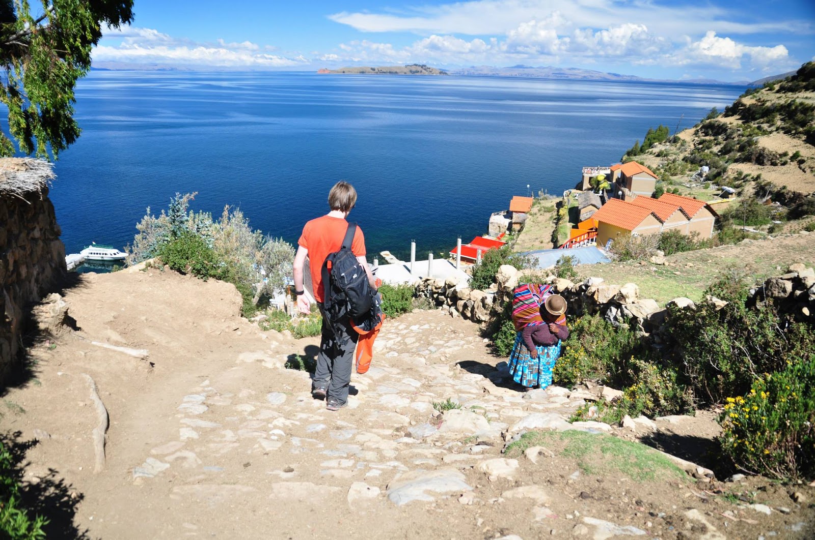 Isla del Sol. Je na něm asi dvacet hostelů a jedna restaurace. V restauraci jsme si objednali sendvič se šunkou. Obsluha se nám vysmála a odešla.