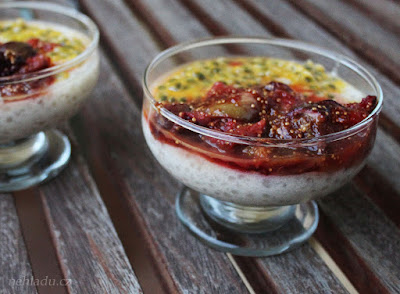 Chia puding už je celkem známá věc, recepty na něj se objevují pomalu na každém druhém blogu a mnoho z vás ho už jistě ochutnalo. Já se ale přiznám, že i když krásně vypadá a určitě je moc dobrý, tak nadšení z chia semínek se mě nějak netýká (což mi připomíná, že chci napsat článek na téma „superfoods“) a ani puding jsem neměla chuť zkoušet. Když jsme ale s Verčou viděly v jedné budapešťské kavárně puding z tapioky, okamžitě jsme ho musely mít! Hlavně teda já jsem ho musela mít 😀 Verča se přidala a oběma nám moc chutnal. Tapioka perly jsem sehnala na internetovém obchodě gurmankoreni.cz, ale musela jsem na dodání čekat asi měsíc. Tak to možná příště zkusím někde jinde. Slyšela jsem, že se dá tapioka sehnat i ve zdravých výživách, tak třeba budete mít štěstí a najdete jí tam! 🙂 Já puding zkombinovala s karamelizovanými fíky, protože jsem je zrovna náhodou měla doma, ale určitě se hodí naprosto jakékoli ovoce, ovocné pyré, oříšky, cokoli vás napadne.